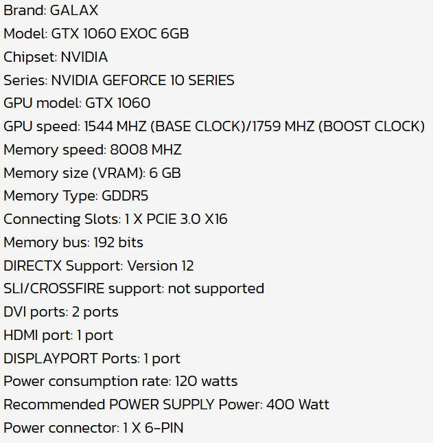 Galax EXOC GTX1060 6GD5